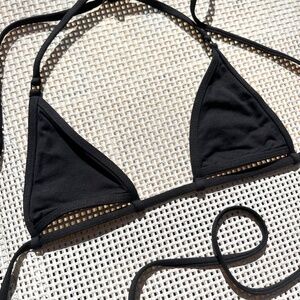 Minimale Animale Cut out Top in Dark Seas ( black) size Small. All my Minimale Animale bikini listings are from my photoshoot/sample/personal collection as the designer of the brand for 10 yrs. If you are do not want a suit unless it has the brand tag please message me direct and I can check your exact item request to let you know, cheers :)
