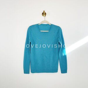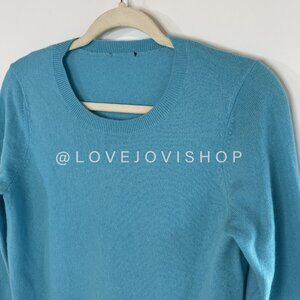 This color!! So stunning in person and in AMAZING quality! This 100% cashmere crew neck sweater feels like a deep breath on a crisp coastal morning — light, soft, and polished. The cerulean sky blue hue gives that clean, preppy energy brands like J Crew, Sezane, and Burberry are known for, even though the tag’s gone missing. It’s the kind of piece that dresses up denim or looks sharp under a blazer, equally at home in a beach town or a city café.