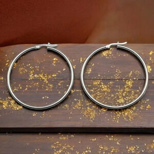 Elevate your style with these Simple Minimalist Trendy 18K white Gold Plated Stainless Steel Hoop Earrings! Perfect for any occasion, these hoops are lightweight, hypoallergenic, and durable. Ideal for those who love a chic, timeless look. Great for everyday wear or special events. 🌟