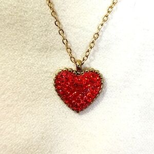 Minimalist 18k Gold Plated Steel Red Crystal Heart Pendant with Chain New