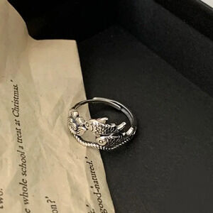Minimalist 925 Sterling Silver Koi Fish Ring Swimming Fish Lotus Flower Ring