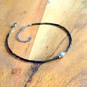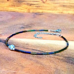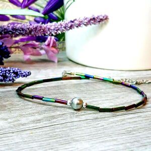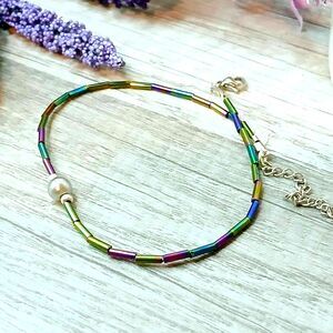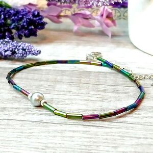 Minimalist Adjustable Beaded Anklet, Rainbow Iridescent Dainty Seed Bead