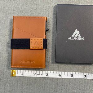 This compact leather card case is designed for organization and efficiency. Featuring an elastic band and card ejector, it offers practicality with a professional aesthetic.