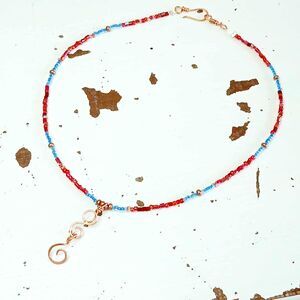 Minimalist Beaded Choker Necklace, Hammered Copper, Handmade Artisan 14.5"