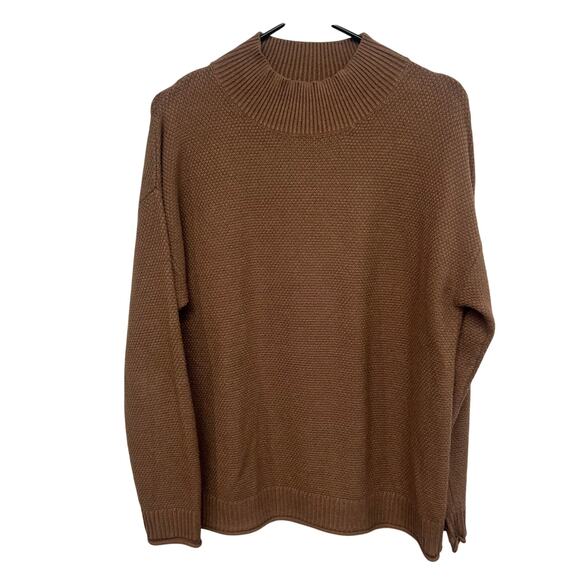 Quiet luxury brown knit mock neck sweater minimalist fall layering M