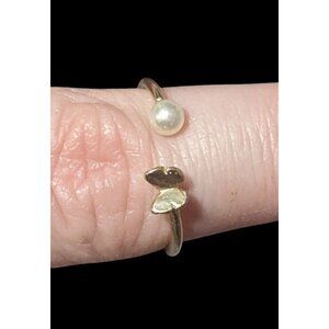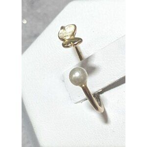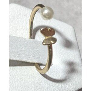 Minimalist Butterfly Faux Pearl Open Top Gold Tone Ring Size 7 3/4