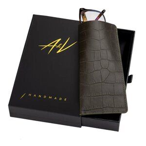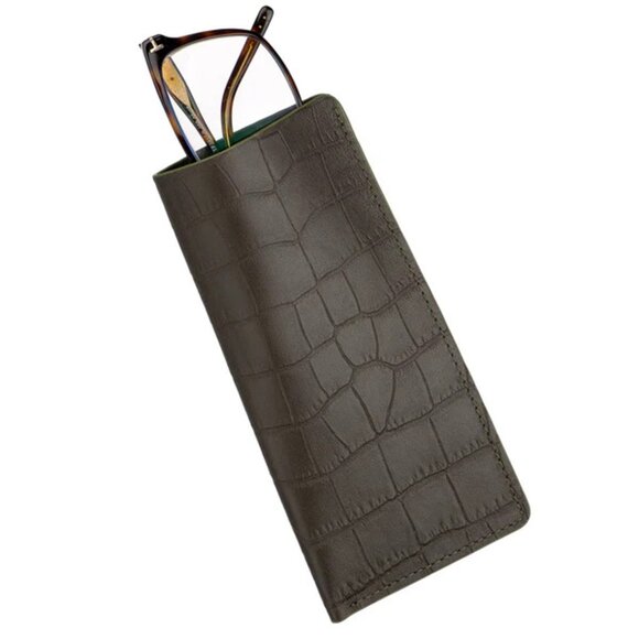 Impress with this premium eyewear case crafted from calfskin embossed to mimic exotic alligator scales. Luxuriously soft and protective — ready to gift or use daily.