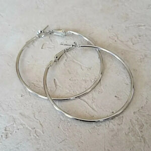 Minimalist Classic Sleek Silver Large Hoop Earrings 50mm 2" Leverback