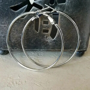 Minimalist Classic Sleek Silver Large Hoop Earrings 50mm 2" Leverback