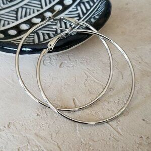 Minimalist Classic Sleek Silver Large Hoop Earrings 50mm 2" Leverback