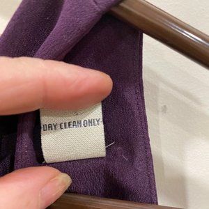 Striking minimalist silk column gown. Color is best described as muted Chinese eggplant (plum/purple). An amazing, classy statement worn on its own, but easily layered and/or accessorized to create a variety of looks for a variety of occasions and seasons. No brand tags. Size 2. Invisible back zip. Fully lined. 50 inches from neckline to bottom hem. 21 inch slit on left side adds just the right amount of interest. Worn 3 times. No stains, pulls, snags or fading. Pair with grey, floral velveteen shawl also in my closet! From clean, pet and smoke free home.