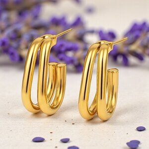 🆕️Minimalist Double C-Hoop Earrings - 18K Gold Plated Stainless Steel Earrings✨