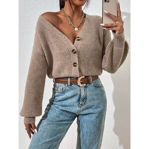 Minimalist Drop Shoulder Ribbed Knit Cardigan sweater