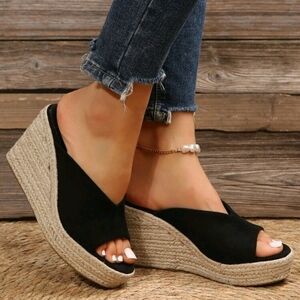 Minimalist Espadrille Faux Suede Wedge Slide Sandals