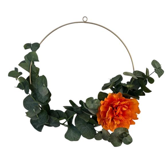 Minimalist Fall Hoop Wreath with Orange Peony & Eucalyptus 12"