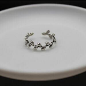 Minimalist Floral Open Leaf Ring Adjustable Rhodium Plated Sterling Silver NWT