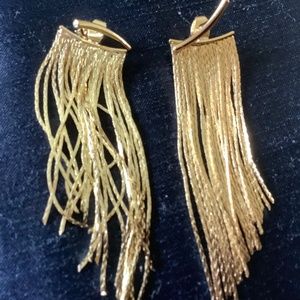 Minimalist Fringe Long Gold or Silver Tone Earrings