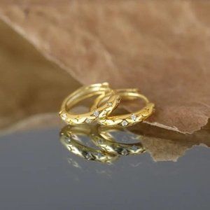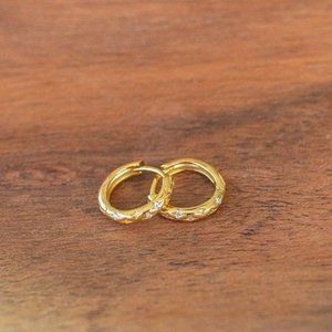 Adorable Gold Sterling Silver Tiny Huggie Hoop Earrings Star Engraved Cubic Zirconia