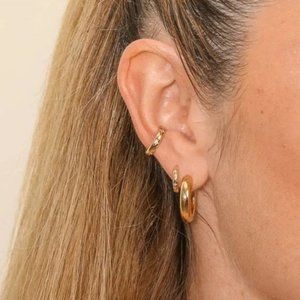 Get the stack of your dreams with the Cosmic Star Bold Huggies - a mystic stacking staple. These add a celestial statement with star engraving and dainty crystals. Wear them alone, or stack with hoops and studs to curate your own look