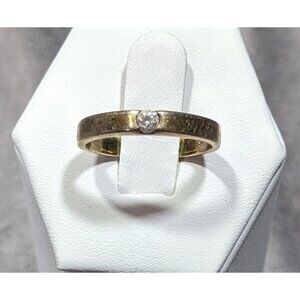 This elegant minimalist ring features a single cubic zirconia set in a gold tone over sterling silver. Perfect for elevating any outfit with a touch of sophistication.