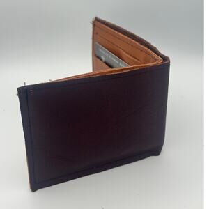 Authentic handmade leather wallet crafted in Oaxaca, Mexico. Designed in a rich burgundy wine color with a warm tan interior, this artisan bifold combines elegance with everyday function. Featuring multiple card slots and a slim profile, it’s both stylish and practical. A timeless piece that highlights traditional craftsmanship with a modern, minimalist appeal.