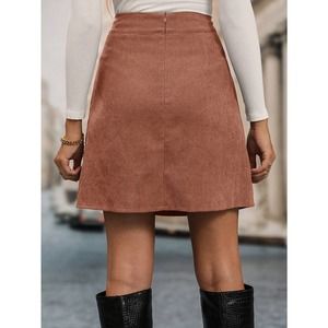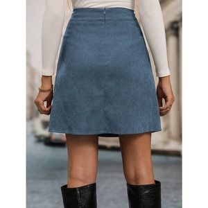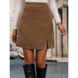 Minimalist High Waist Split Hem Corduroy mini Skirt