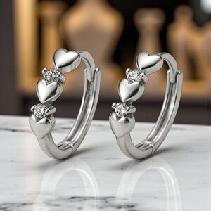 Sterling silver hoop earrings | minimalist heart hoops | dainty zirconia earrings | everyday earrings | S925 silver jewelry | hypoallergenic earrings | silver hoops | gift for her | quiet luxury earrings | timeless hoop earrings | premium jewelry gift | chic silver earrings | classic hoops with hearts | trendy silver earrings | Poshmark jewelry boutique | dainty hoops | heart shaped jewelry | romantic earrings | anniversary gift idea | luxury minimalist jewelry | silver fashion hoops | bridal earrings