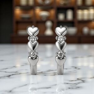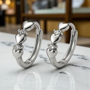 Sterling silver hoop earrings | minimalist heart hoops | dainty zirconia earrings | everyday earrings | S925 silver jewelry | hypoallergenic earrings | silver hoops | gift for her | quiet luxury earrings | timeless hoop earrings | premium jewelry gift | chic silver earrings | classic hoops with hearts | trendy silver earrings | Poshmark jewelry boutique | dainty hoops | heart shaped jewelry | romantic earrings | anniversary gift idea | luxury minimalist jewelry | silver fashion hoops | bridal earrings
