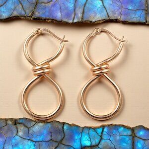 Add a touch of timeless elegance with these stunning infinity-inspired earrings in radiant rose gold. Crafted from premium 316L stainless steel and plated with luminous 18K rose gold, these hoops are designed to stand out while offering everyday comfort. Their modern twist-loop silhouette symbolizes endless beauty, making them a versatile accessory you can pair with anything from casual outfits to evening wear. Hypoallergenic, tarnish-resistant, and water-resistant, these earrings are built to last while keeping their chic shine. Lightweight yet bold, they strike the perfect balance between minimalist sophistication and trendy modern flair. A gorgeous jewelry box staple for yourself or a thoughtful gift for someone special.