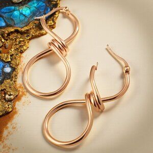 Rose gold earrings | Infinity hoop earrings | 18K rose gold plated stainless steel | Hypoallergenic earrings | Tarnish resistant jewelry | Water resistant earrings | Quiet luxury jewelry | Everyday hoop earrings | Gift for her | Minimalist rose gold hoops | Modern fashion jewelry | Lightweight earrings | Chic loop earrings | Rose gold statement earrings | dainty