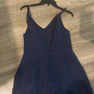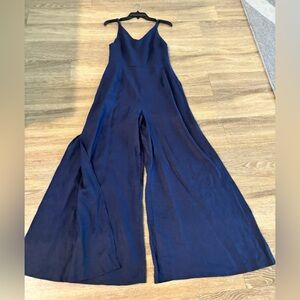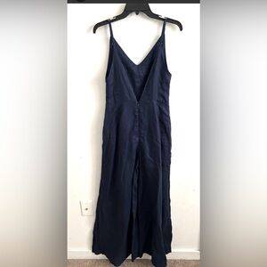 Minimalist Jumpsuit Navy Split Wide Leg Women Sleeveless Coastal Linen Backless