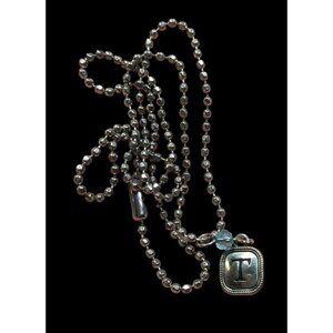 Minimalist Letter T Pendant Necklace With Blue Accent Bead