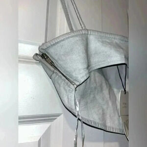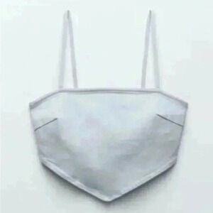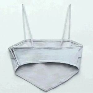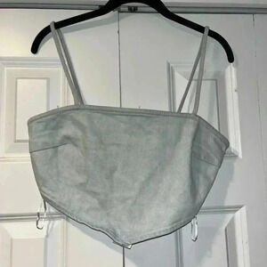 Keywords: crop top, bustier, tank top, summer top, light gray, minimalist, spaghetti straps, adjustable straps, cotton, sleeveless, structured top, festival wear, beach wear