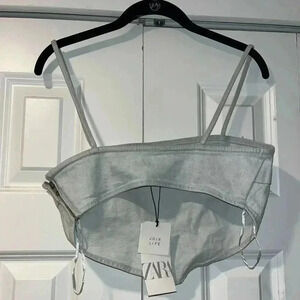 Minimalist Light Gray Cotton Crop Top Bustier Summer Tank Denim, Crop A37