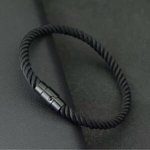 Minimalist Mens Black Rope Bracelet Magnetic Buckle Paracord 7.6”