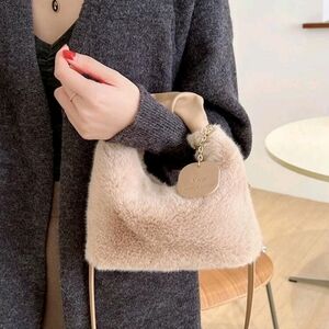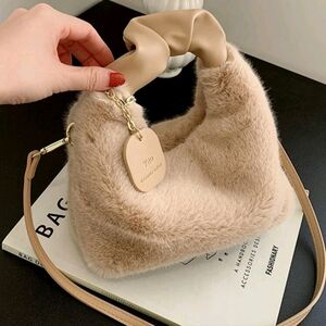 Minimalist Metal Decor Plush Hand Bag, Casual Daily Use