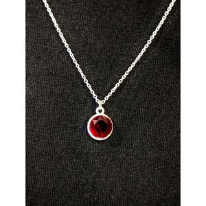 - Red Crystal Pendant – faceted stone in silver-tone bezel
