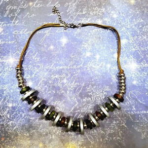 Strung on brown waxed cotton cord with lobster claw clasp