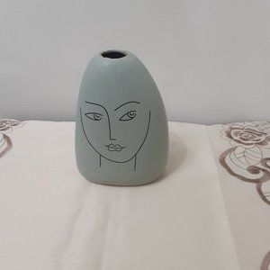 Minimalist female face abstract art vase. 5.5" tall ceramic. In like new condition with no chips or cracks. Great for display or incense. Light seaform green color. Not branded.