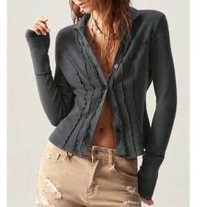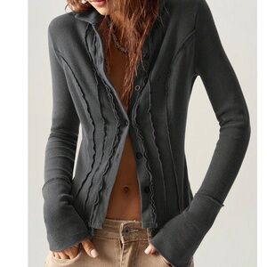 Minimalist Reverse Stitch Button down Long Sleeve Top