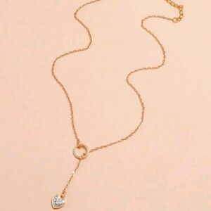 Minimalist Rhinestone Heart Charm Y Lariat Necklace gold color for women