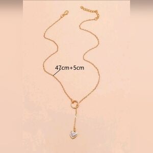 Rhinestone Heart Charm Y Lariat Necklace gold color for women