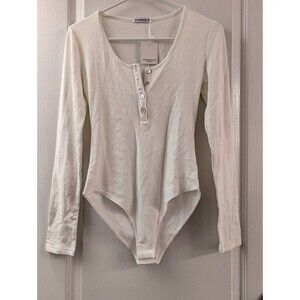 Minimalist Ribbed Henley Bodysuit – Size S – Cream – Long Sleeve – NWT -MANGOPOP