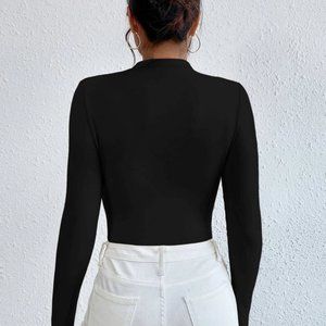 Black Preppy Womens Ruched Slim Fit Bodysuit