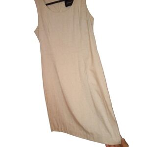 Minimalist Sleeveless Dress Tan Max Taylor Sheath Midi Zipper Office Casual 7/8