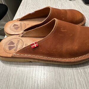 Handcrafted from premium leather, the minimalist style slide is the perfect slip on and go shoe. Comfortable with or without socks. Minimal wear. Euro size 39. I wear us size 8.5 and they fit great. I believe they could be worn from size 8 to 9.