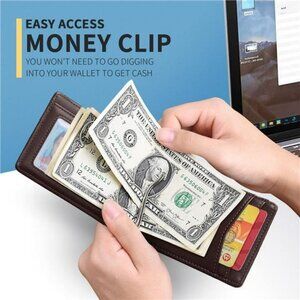 Minimalist Slim Wallet for Men w/ Money Clip RFID Blocking Front Pocket Leather