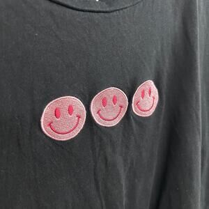 Y2K streetwear smiley face embroidered tee black pink graphic XL