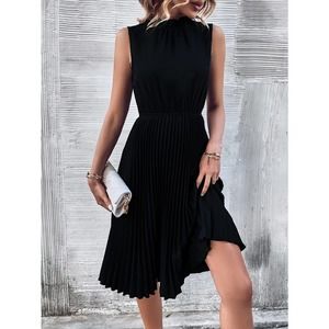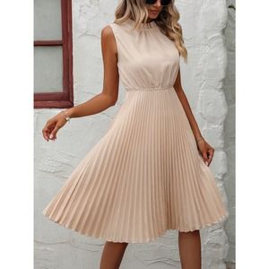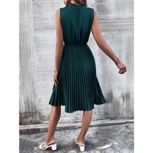 Minimalist Solid Pleated Hem Mock Neck Dress dark green