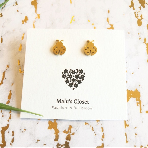 Minimalist Stainless Steel Cute Gold Studs Earrings Natural Ladybug Earrings